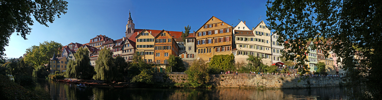Panorama Neckarfront Tübingen, 3 Aufnahmen Spätsommer (verfügbar 150 x
